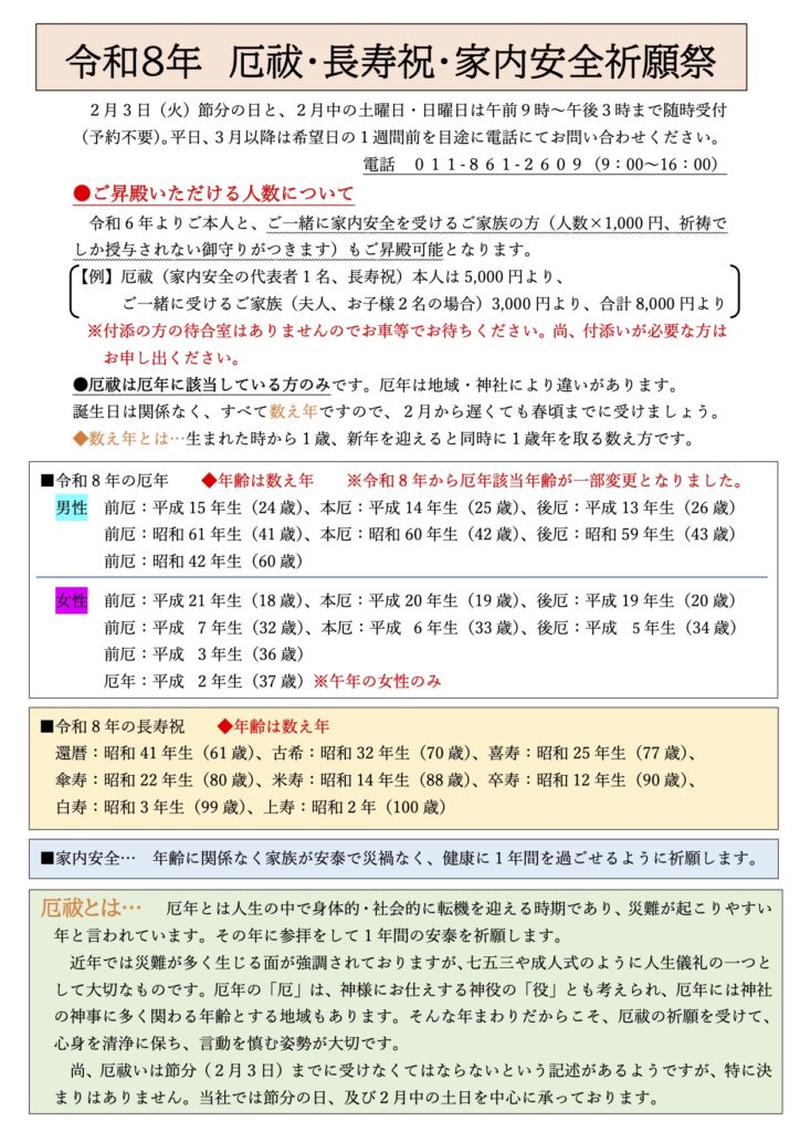 令和8年 厄祓・長寿祝・家内安全祈願祭について